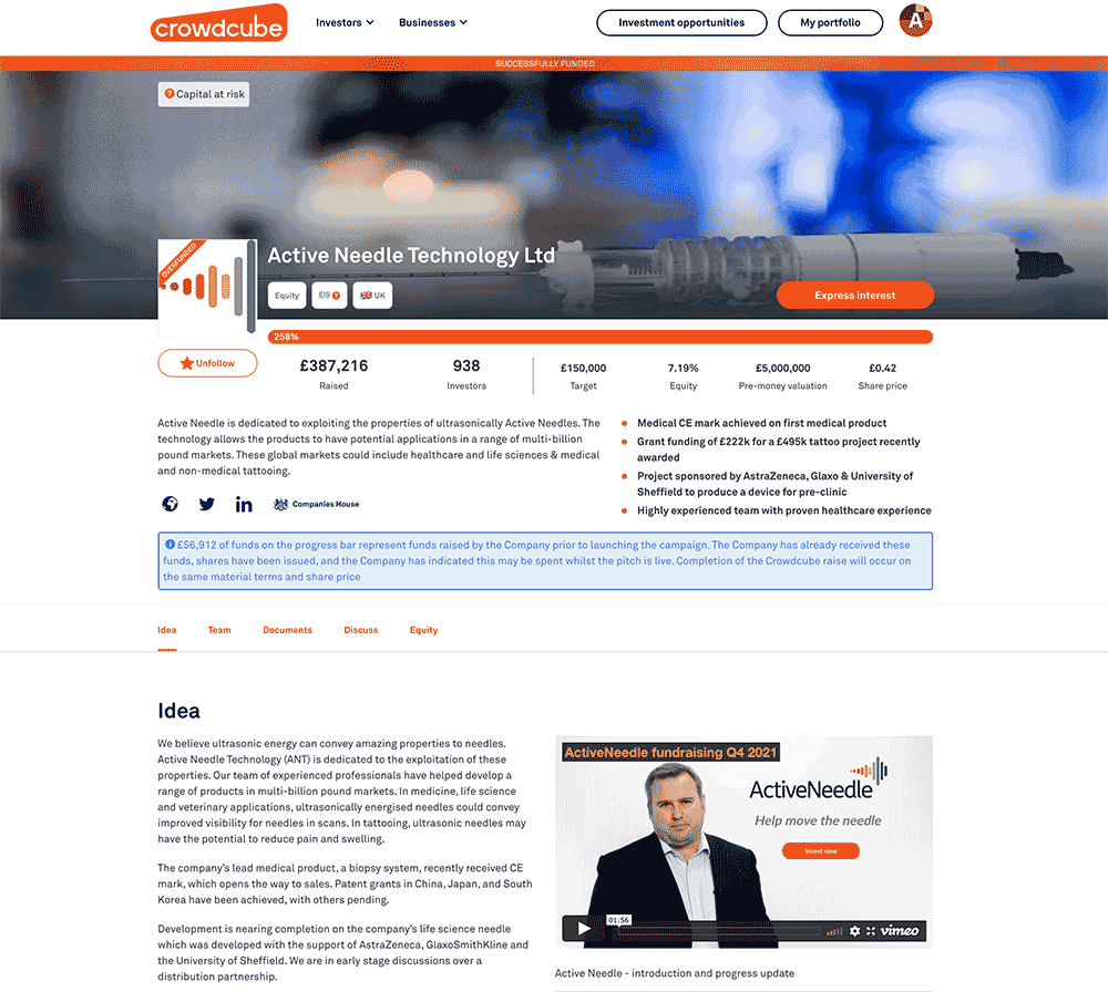 Oxfordshire-based MedTech company, Active Needle Technology (ANT) wanted to raise investment to take them from start-up to scale-up. As part of their campaign, they engaged us to create a fundraising film that would specifically appeal to everyday investors on Crowdcube.